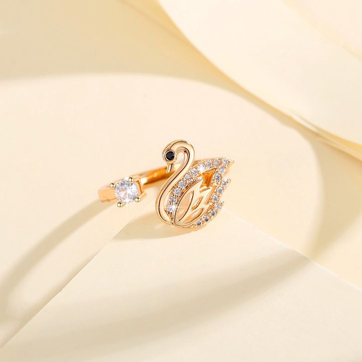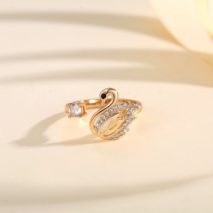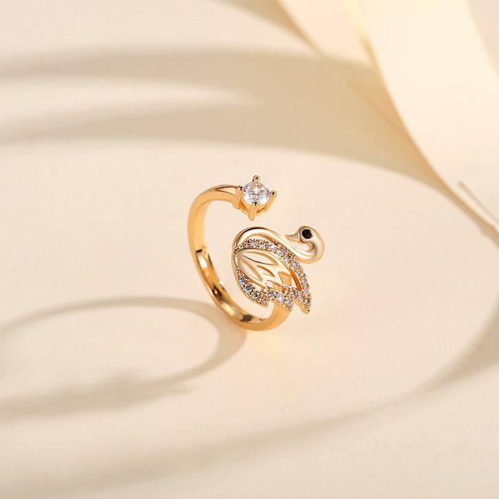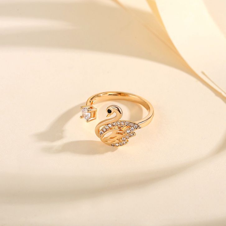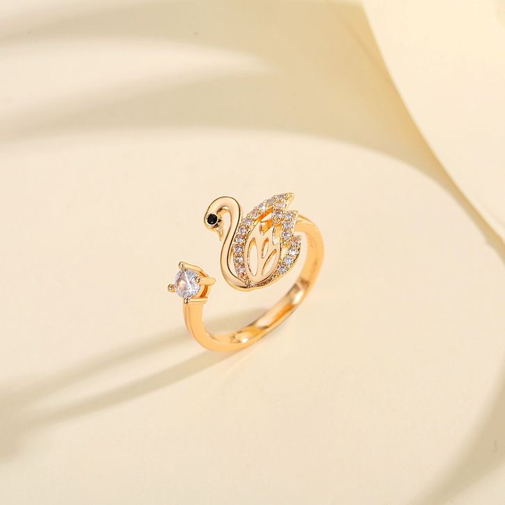 Cincin Wanita Angsa Titanium Anti Karat Permata E-mas Stainless Steel Berlian Kawin Zirkon Fashion Wanita Rings Y538