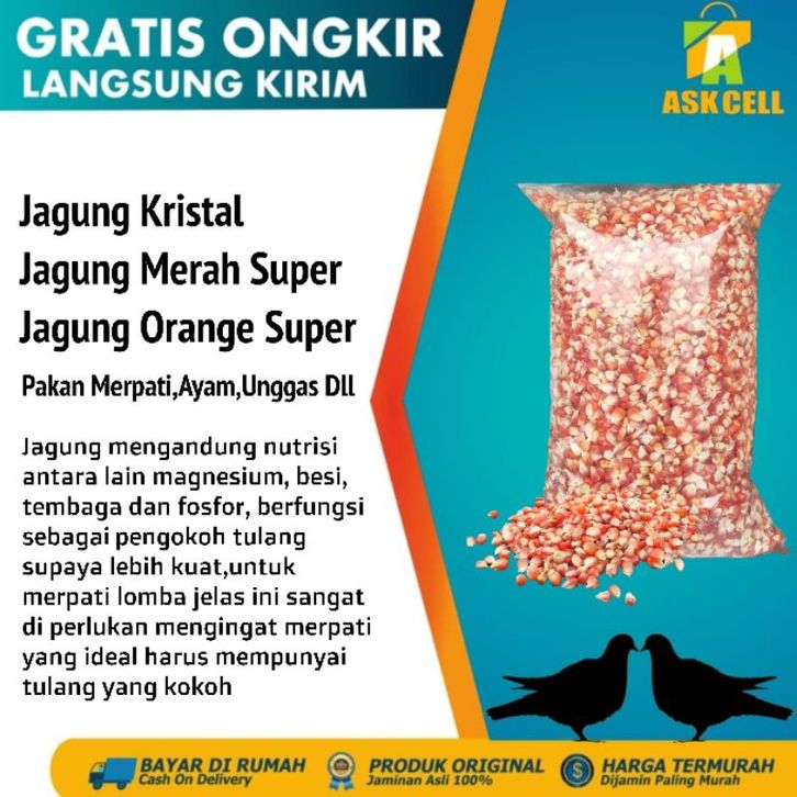Jagung Merah/Jagung Orange super/Jagung Crystal Kristal Pakan Merpati,Pakan Unggas,Ayam dll.Kemasan 1KG. Jagung Merpati