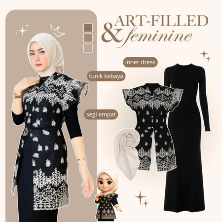Outfit Kondangan Aesthetic Vest Kebaya Inner Dress Kerudung Setelan 3in1 Kekinian AM210N