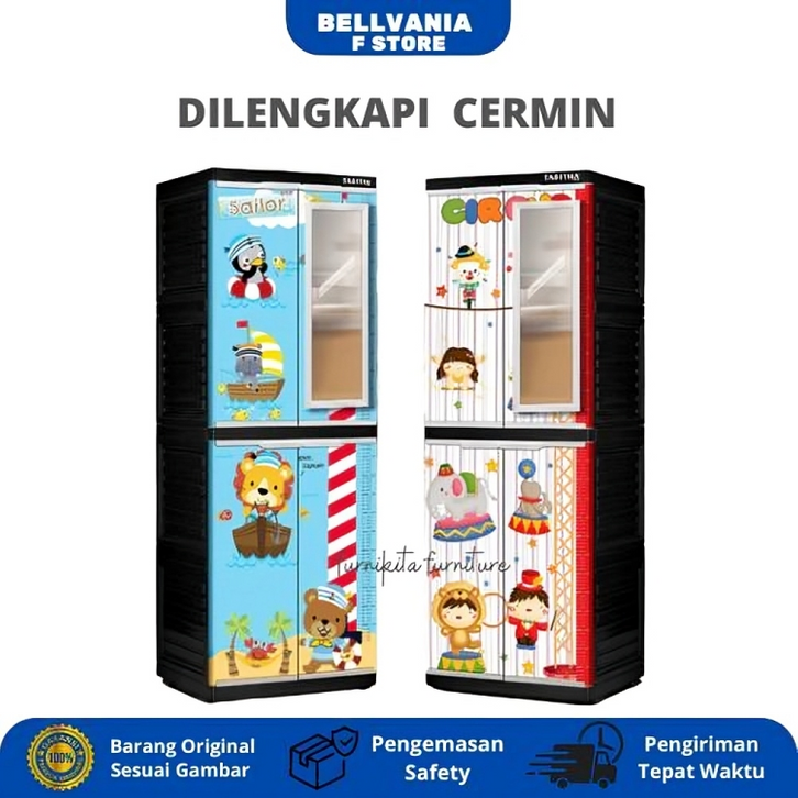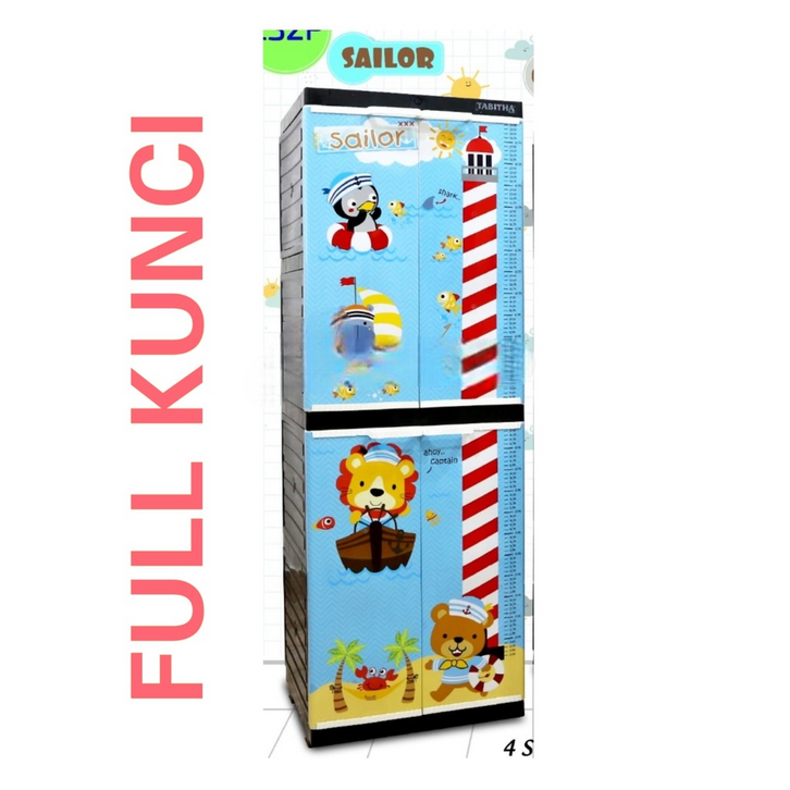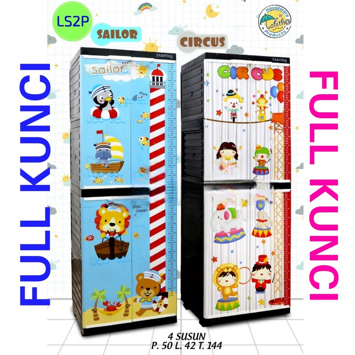 Lemari Pakaian Plastik Jumbo Anak 4 Susun Full Kunci Karakter Anak Ukiran Jepara