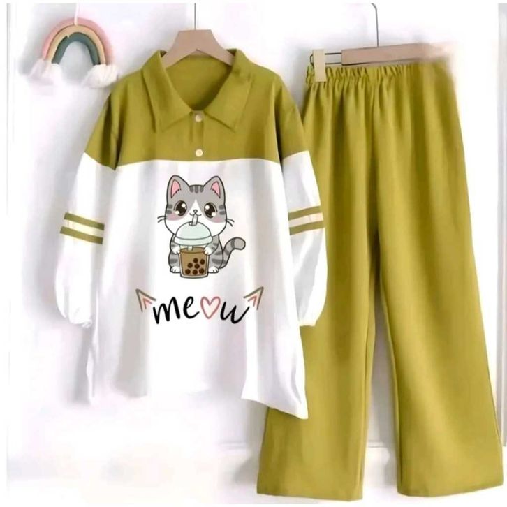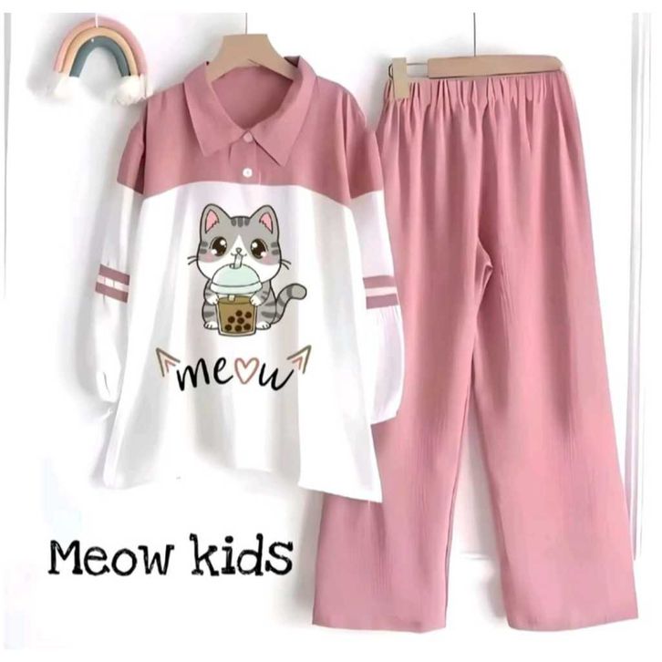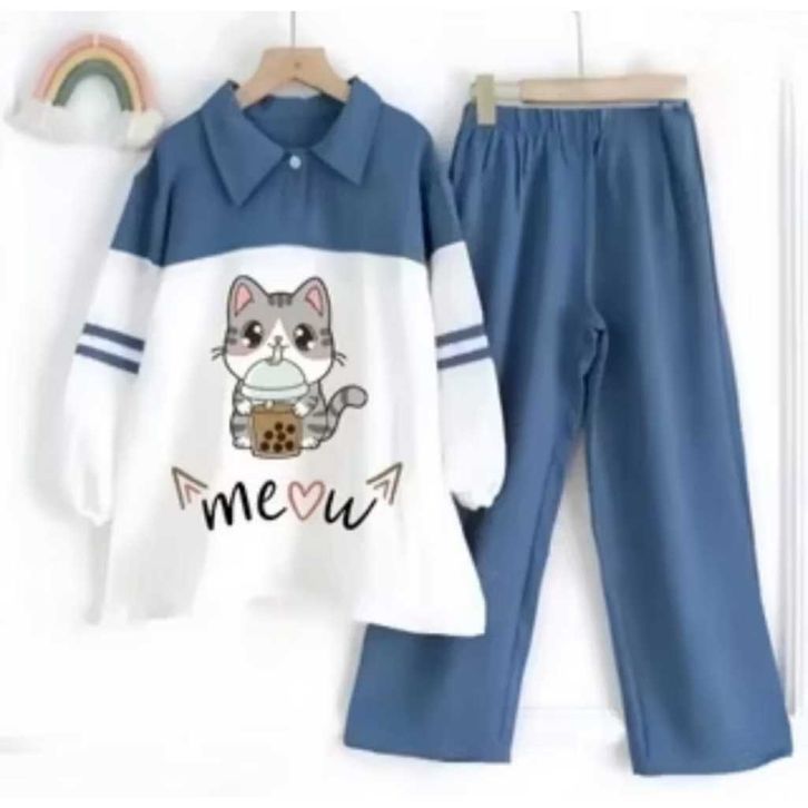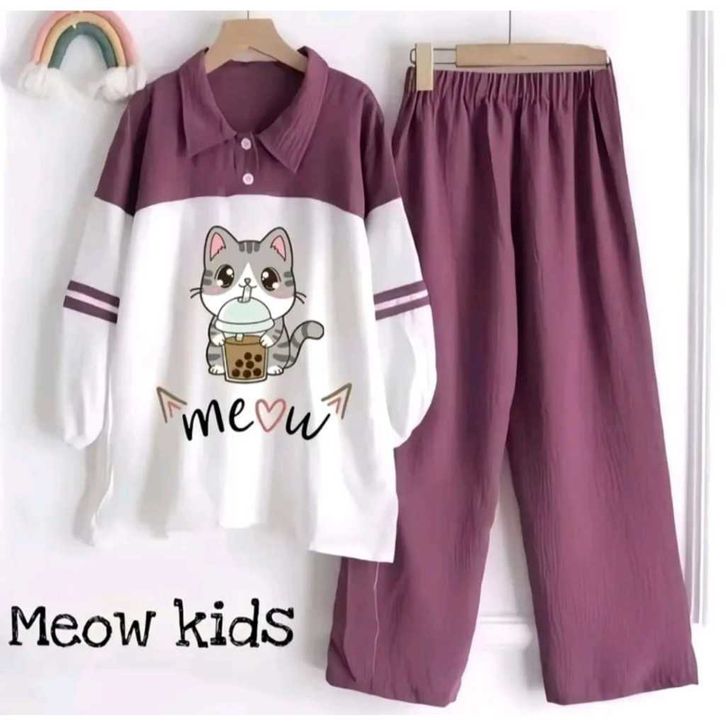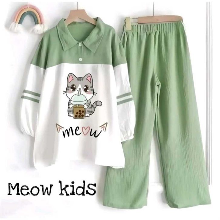 SETELAN ANAK PEREMPUAN TERBARU SET KIDS USIA 5-11 TAHUN SET KEKINIAN BAHAN CRINKLE AIR FLOW BAJU ANAK CEWEK MOTIF MEOW