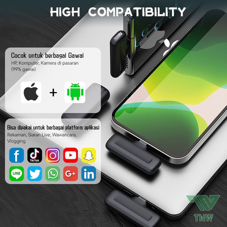 TNW-X8 Mikrofon Nirkabel Lavalier dengan Kotak Pengisi Daya Wireless Microphone Mikrofon Lapel Mini Microphone Mic clip