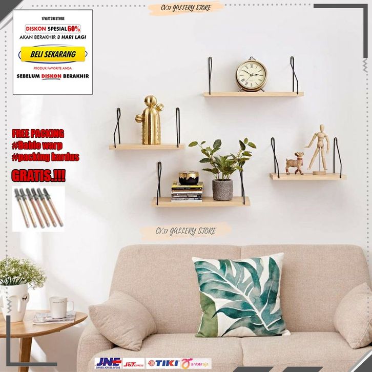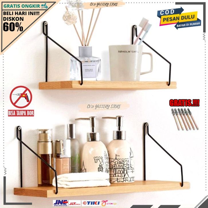 Rak Hiasan Dinding Gantung Kayu Besi Tempat penyimpanan Pajangan Tanaman Hias Bunga Buku Kosmetik make up Kopi Bumbu