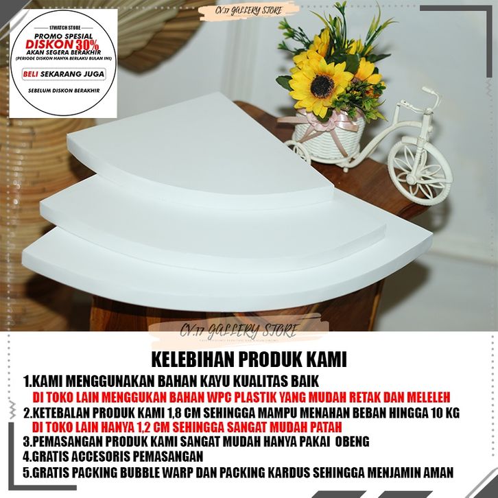 Rak Papan Ambalan Hambalan Hiasan Dekorasi Tempat penyimpanan Buku Bunga make up Makeup Kosmetik Bumbu Dapur Speaker Din