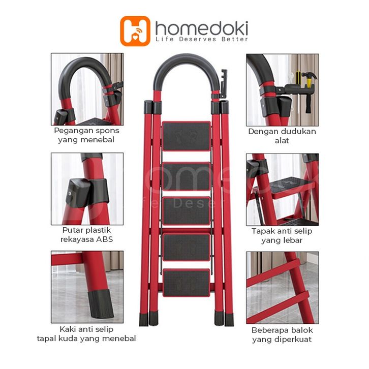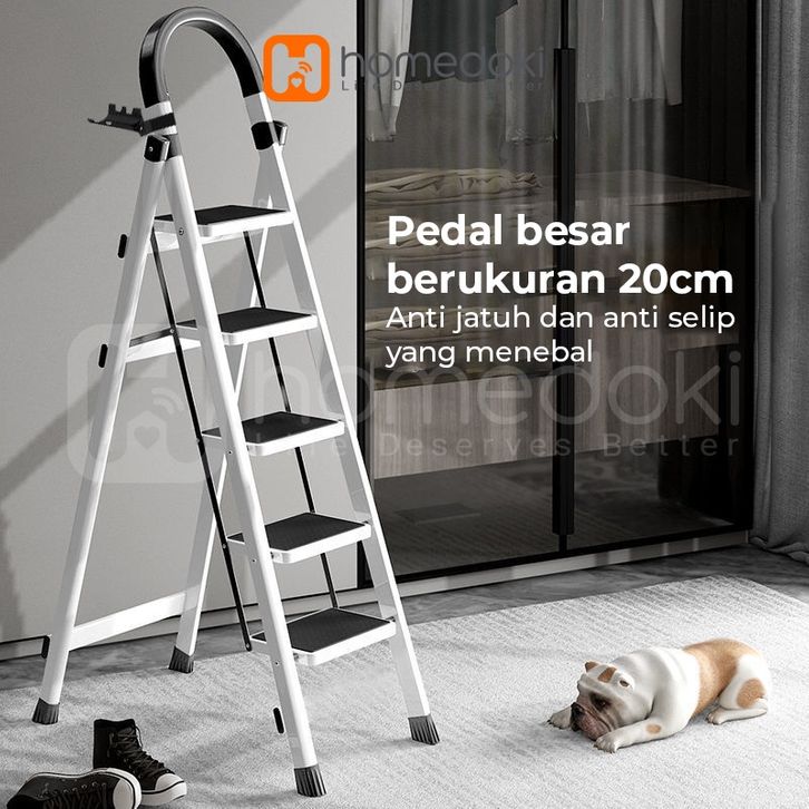 Homedoki Tangga Rumah Lipat Tangga Besi Lipat 3/4 Step Household Steel Ladder/ Tangga Lipat Aluminium 4 Step Premium Lad