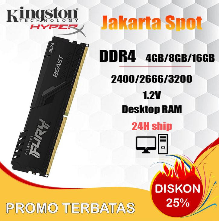 PROMO 【JAKARTA SPOT】4GB/8GB/16GB BEAST KINGSTON HYPERX 2400/2666/3200MHZ DESKTOP RAM DDR4 DIMM MEMORY FOR PC
