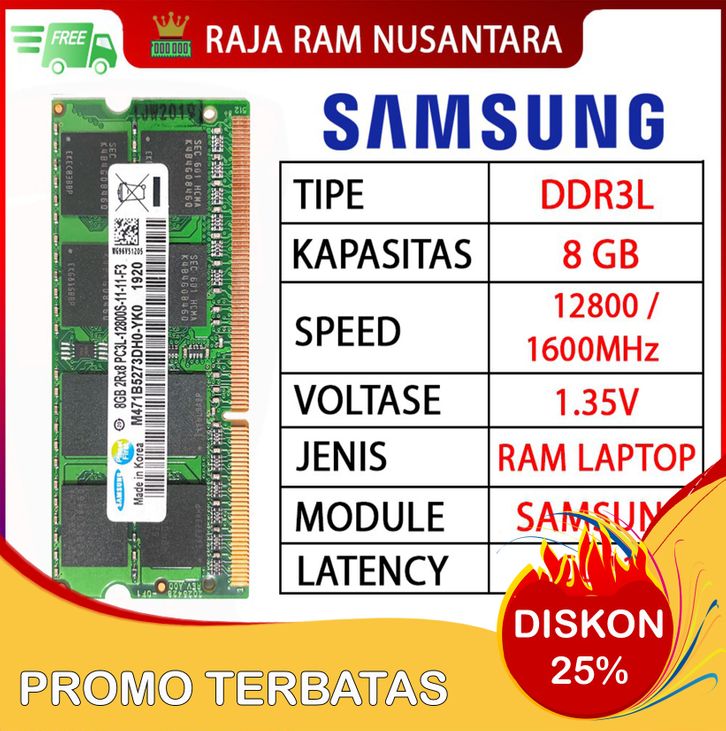 PROMO RAM NB SAMSUNG DDR3L 8GB 12800 / 1600MHZ LAPTOP / NB SODIMM PC3L SAMSUNG ORIGINAL