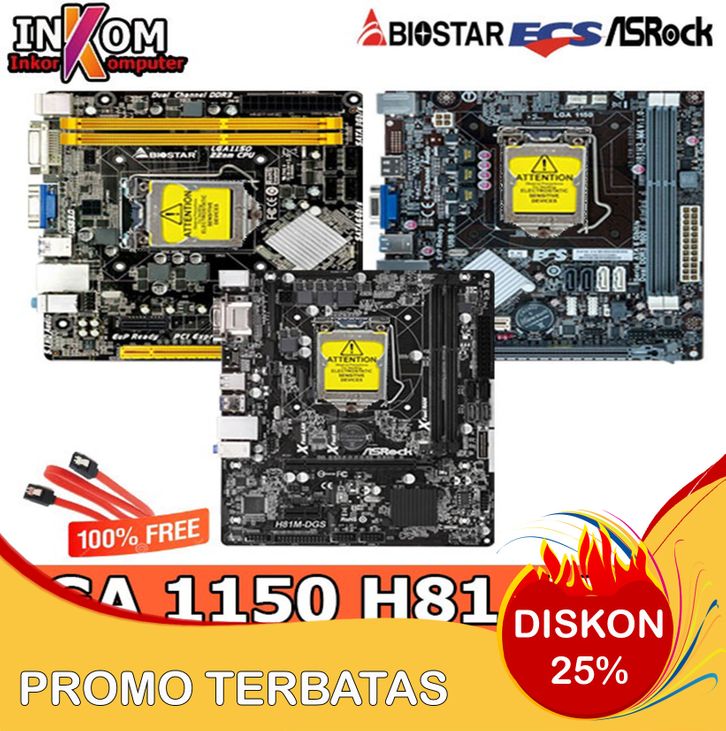 PROMO MAINBOARD MOTHERBOARD MOBO INTEL LGA 1150 H81 ONBOARD ECS/ASROK