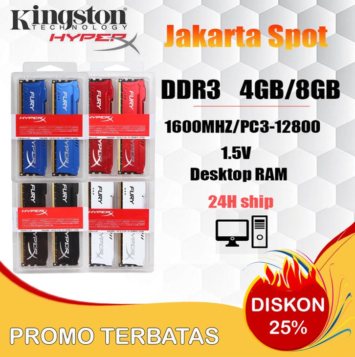 PROMO 【JAKARTA SPOT】 2PCS 8GB KINGSTON HYPERX DESKTOP RAM DDR3 1600MHZ PC3-12800 DIMM MEMORY FOR PC DUAL CHANNEL
