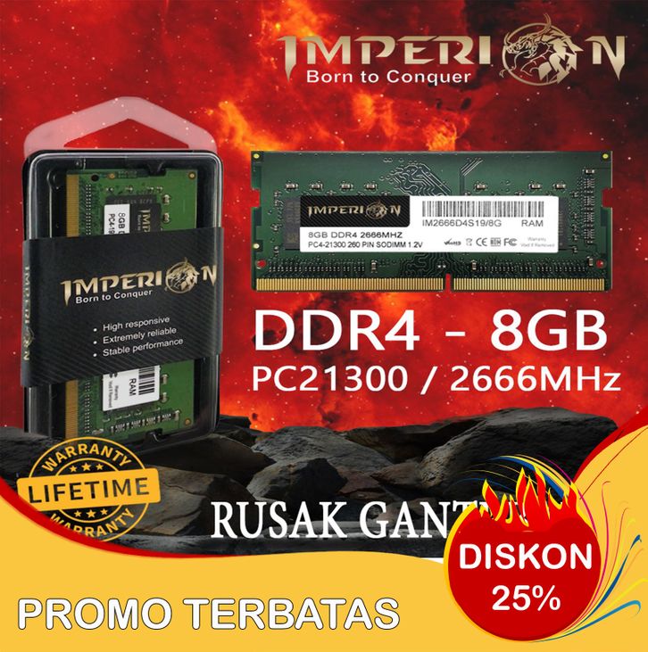 PROMO RAM IMPERION DDR4 8GB 2666 MHZ PC21300 RAM LAPTOP SODIMM GARANSI RESMI 1.2V