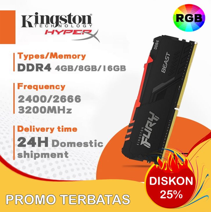 PROMO 【JAKARTA SPOT】48GB/16GB BEAST RGB KINGSTON HYPERX 2400/2666/3200MHZ DESKTOP RAM DDR4 DIMM MEMORY FOR PC