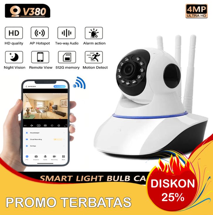 PROMOKamera IP CCTV V380 Pro dengan 3 Antena Wireless Wifi jarak jauh lewat hp