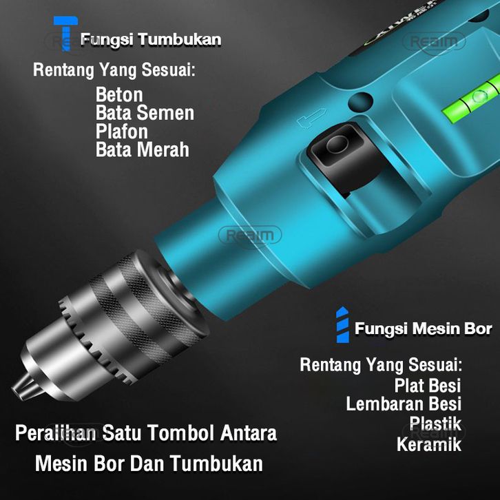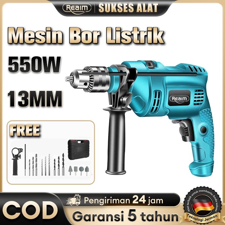 [Star] Mesin Bor Listrik Bolak Balik Reaim 13MM Mesin Bor Listrik 550W Bolak Balik Electric Drill Bor Beton Kayu Besi