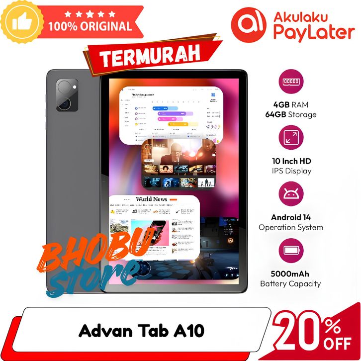 tablet advan a10 WIFI Only 4GB/64GB 10.1'' IPS Screen Tablet 5000mAh Andorid 14 - Garansi Resmi 1 Tahun