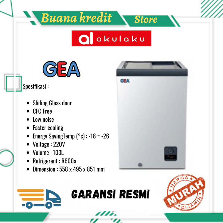 FREEZER GEA SLIDING KACA SD 103 KAPASITAS 100 LITER