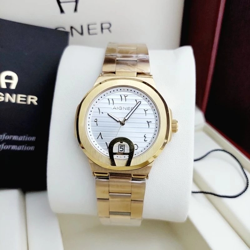 JAM TANGAN WANITA AIGNER TAVIANO A113100 GOLD WHITE STAINLESS STEEL - FREE BOX BIASA FREE ONGKIR
