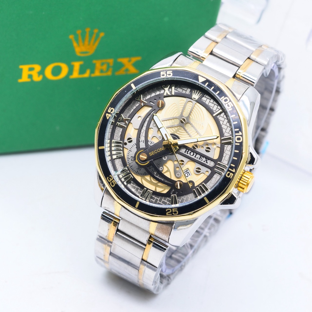 JAM TANGAN PRIA ROLEX 4690HB ANALOG STRAP STAINLESS STEEL TANGGAL AKTIF FREE BATERAI CADANGAN DAN BOX EXCLUSIVE