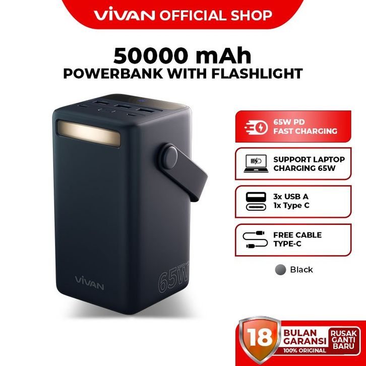 [Star] Powerbank VIVAN 50000mAh VPB-B50 4 Port Fast Charging 65W PD Support Notebook Bergaransi Terbaru