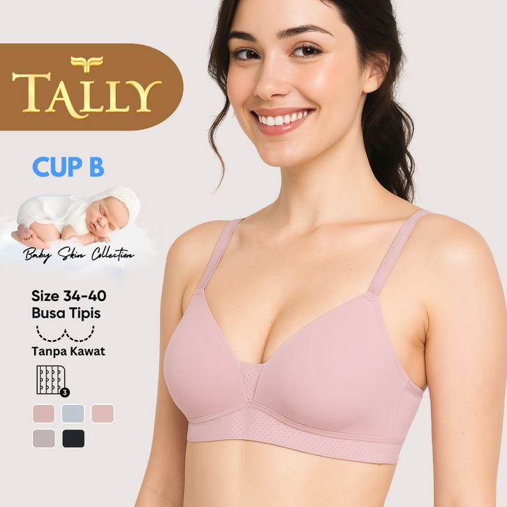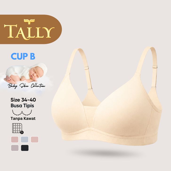 TALLY Bra Tanpa Kawat Busa Tipis Bahan Katun Baby Skin CUP A - B Kait 3 PREMIUM Daily Bra BH 2133 Sarwendah