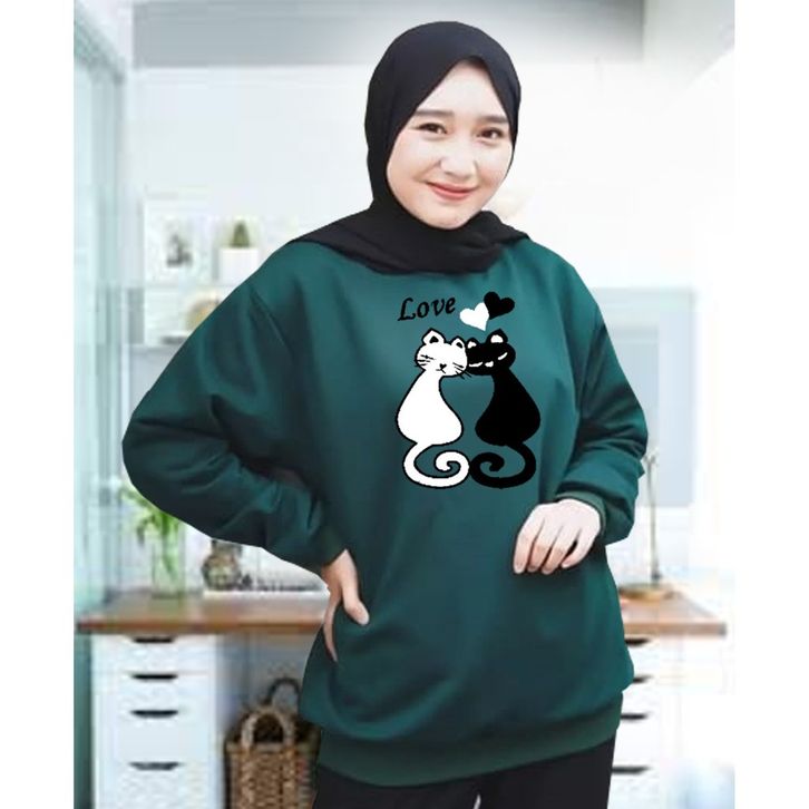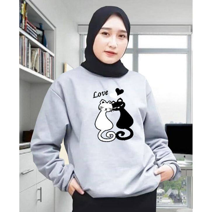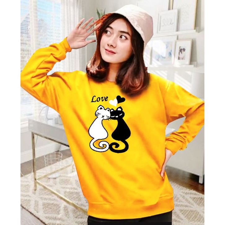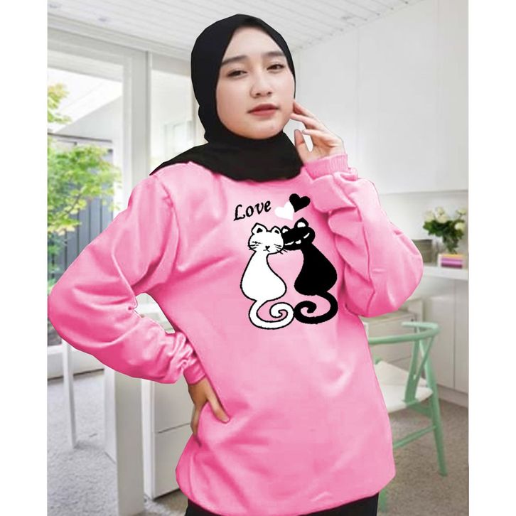 Kaos lengan panjang meow 2/Kaos Swaetshirt/Atasan Wanita