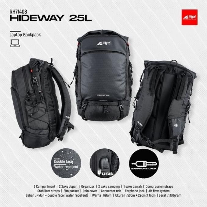 Tas Ransel Pria Urban Adventure HIDEWAY 25 Liter+USB Arei Outdoorgea Original