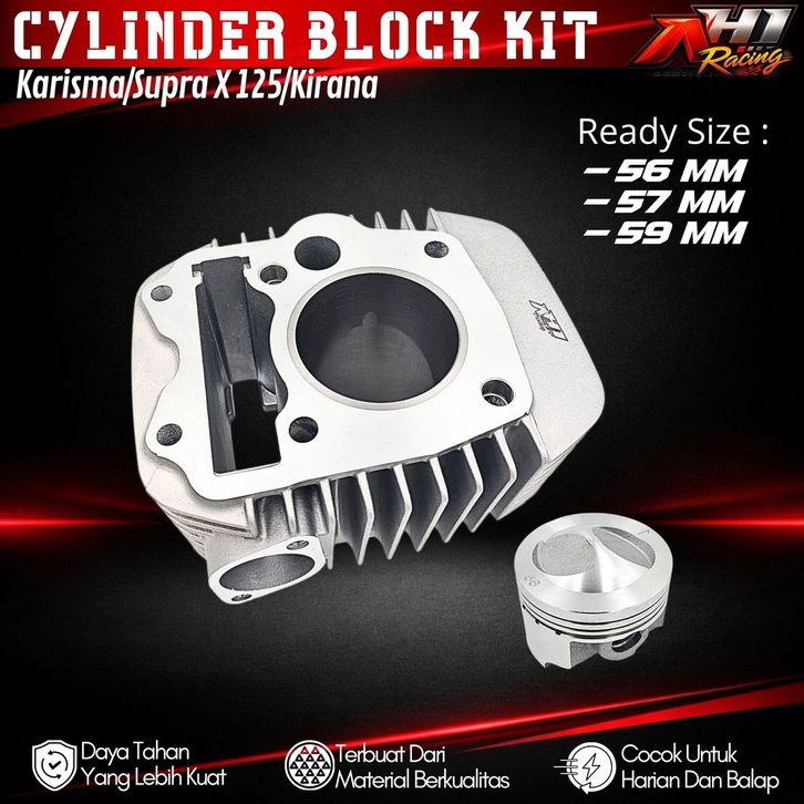 Block Boring Blok Seher Bore Up Karisma Supra X 125 Kirana Kharisma 56 57 59 Mm AH1 Racing Casting