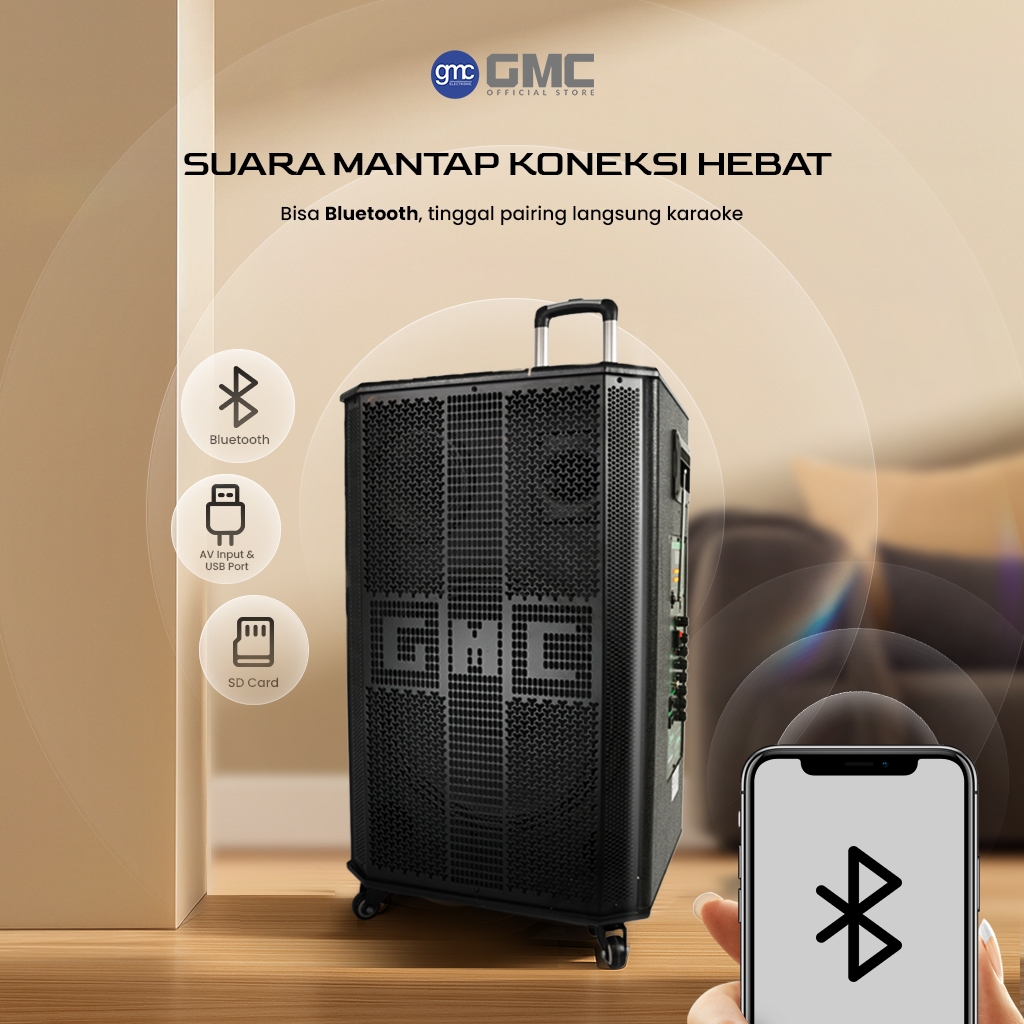 SPEAKER BLUETOOTH GMC 899V PROFESSIONAL LINE 18 10 15 INCH 500W SALON AKTIF MUSIC SOUND SYSTEM KARAOKE MIC 2 WIRELESS