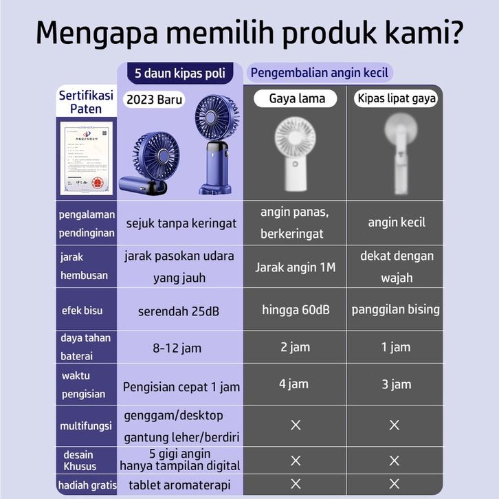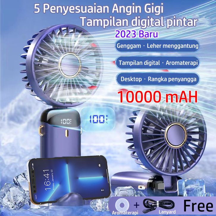 Kipas Angin Mini Portable Usb 10000 mAh Kipas Lipat / Leher 5-Speed Wind LED Display Dengan Aromaterapi