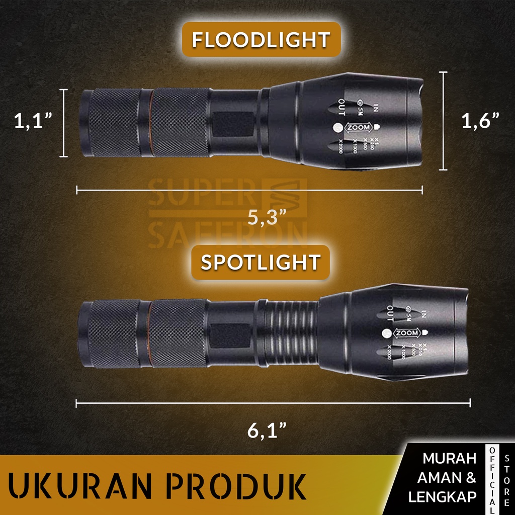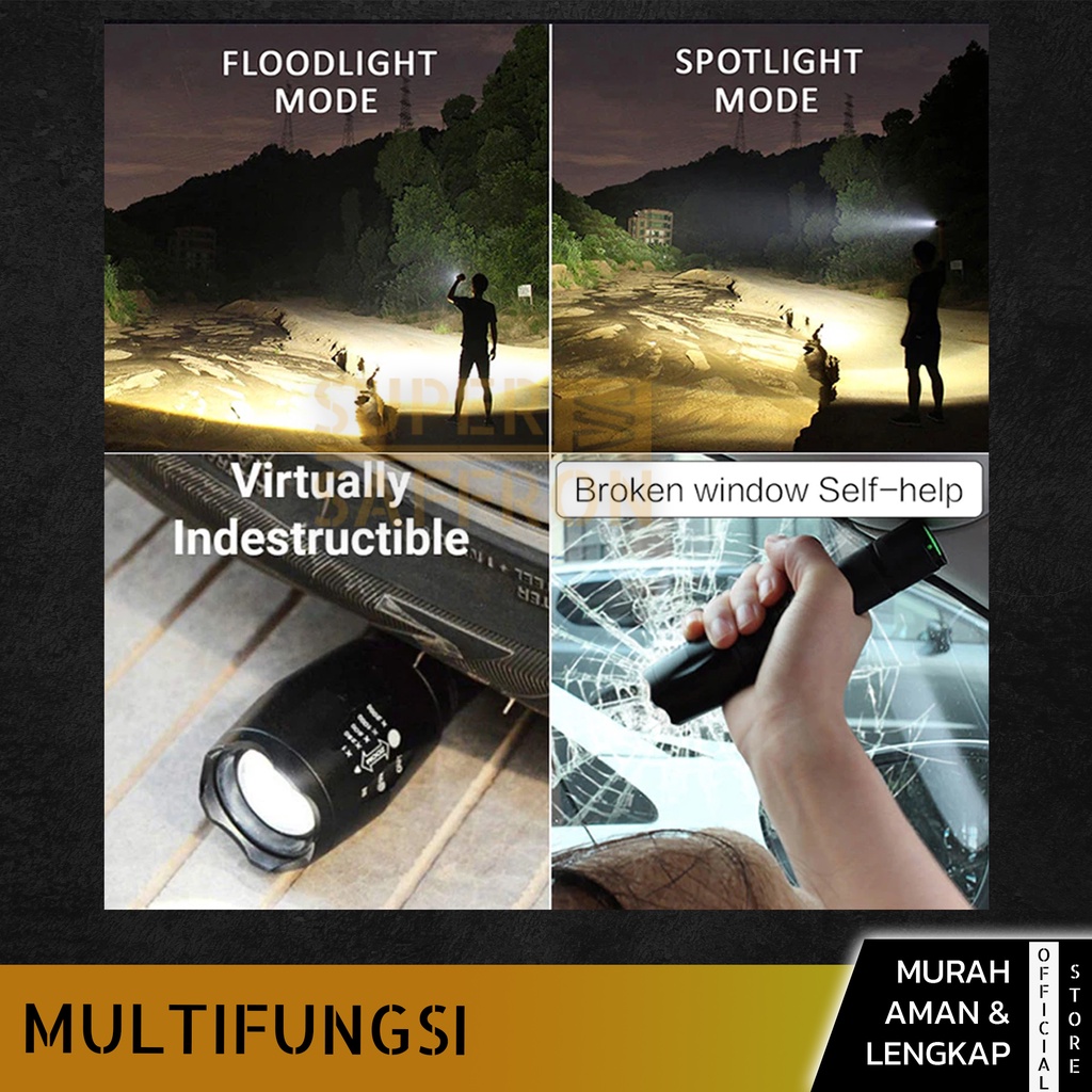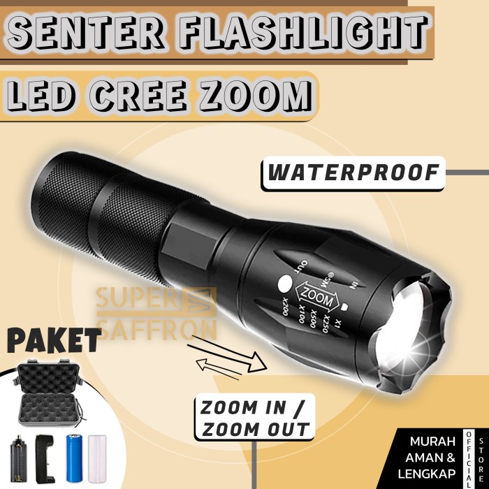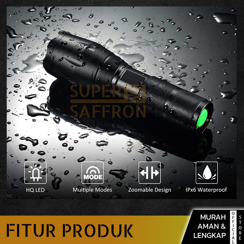 SENTER WATERPROOF SUPER TERANG LED TACTICAL ANTI AIR LAMPU SWAT ZOOM MURAH FREE CHARGER