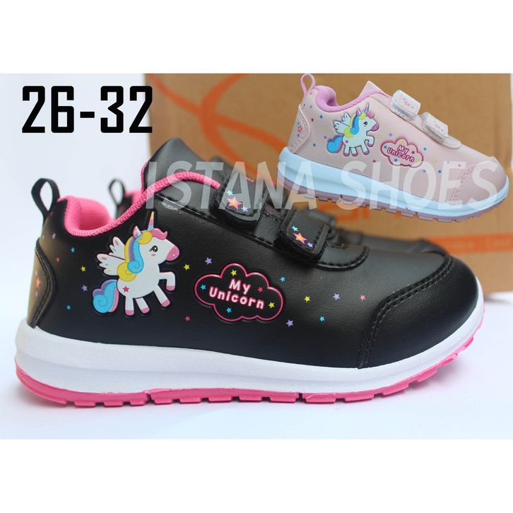 SEPATU SEKOLAH ANAK PEREMPUAN ANDO KUDA PONY PINK PAUD TK SD KETS SPORT RUNNING MINICORN HITAM