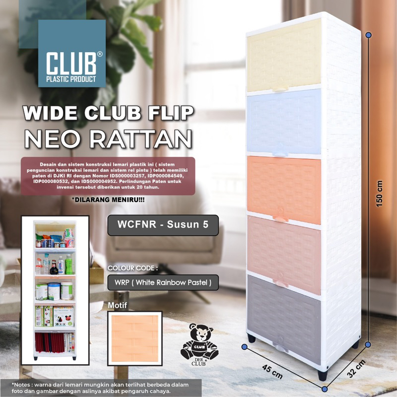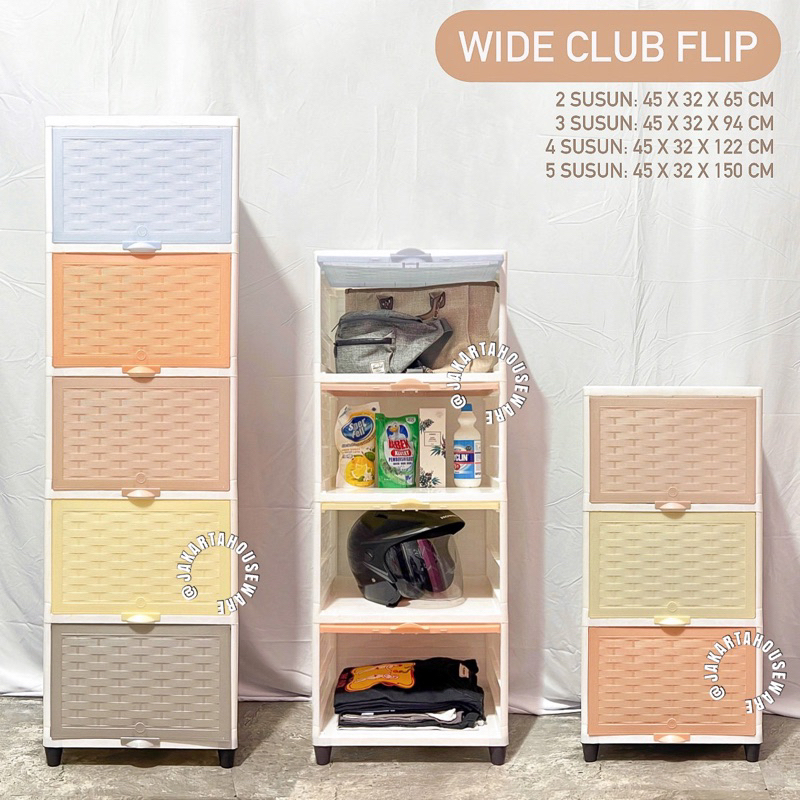 Lemari Serbaguna Wide Club Flip Lemari Cabinet Besar Lemari Pakaian Plastik Lemari Buku Lemari Tas Lemari Helm Serbaguna