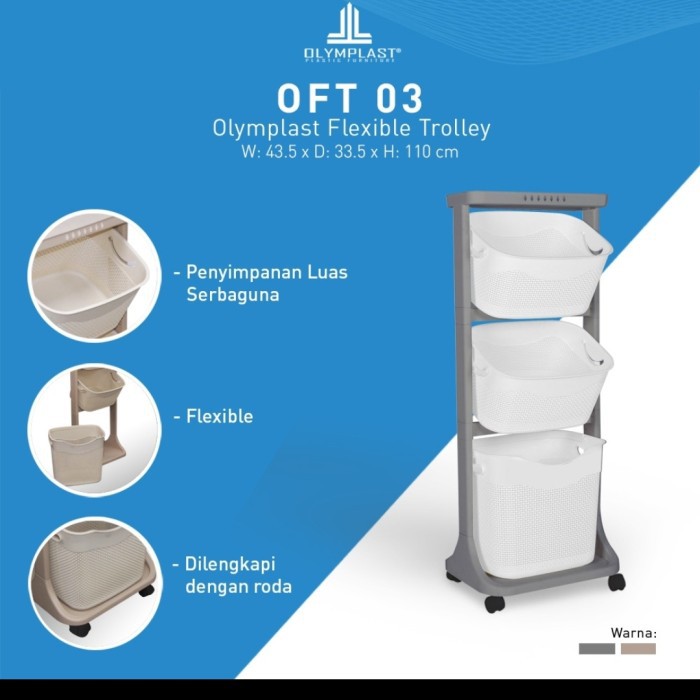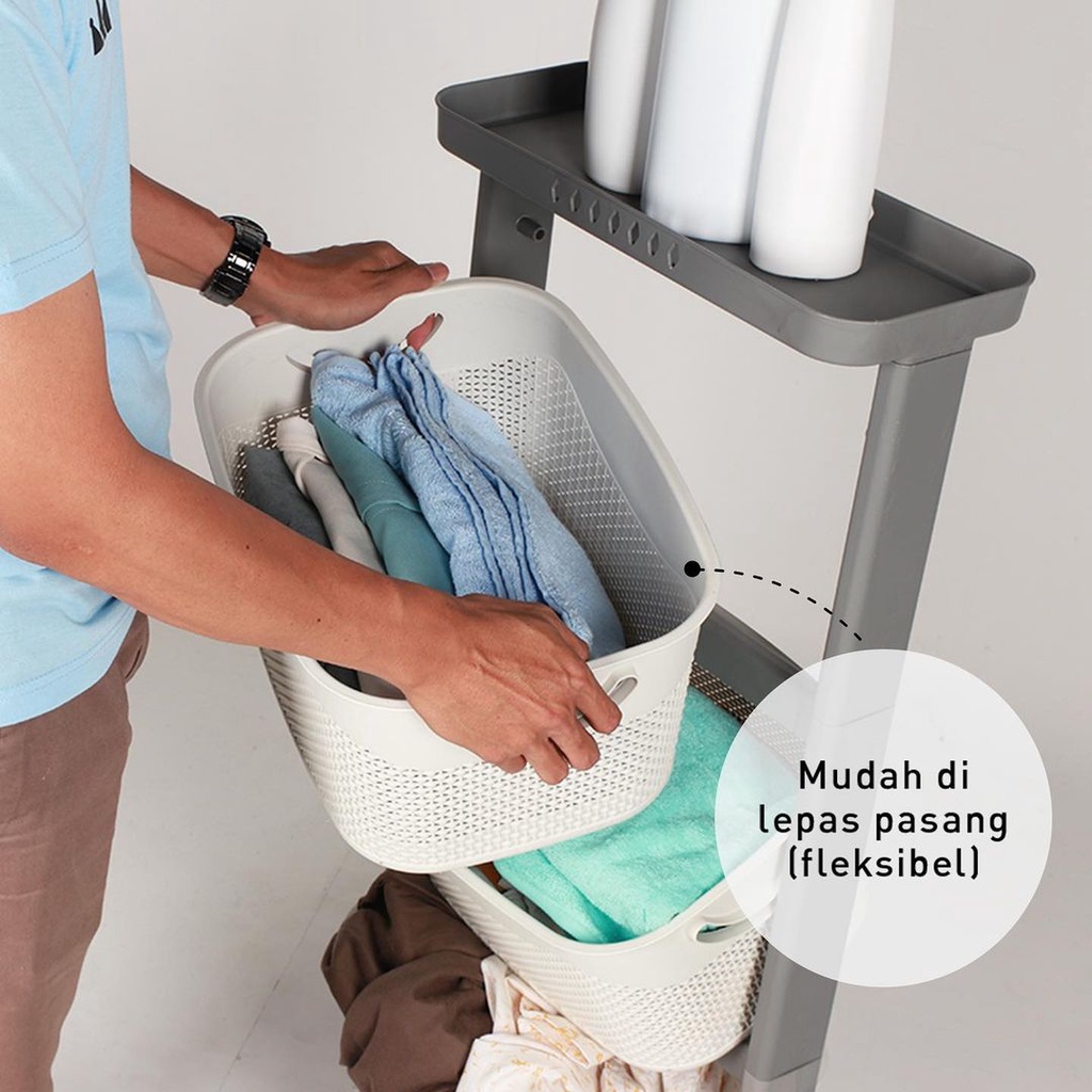 LAUNDRY BASKET PLASTIK OLYMPLAST SUSUN 3 RAK SERBAGUNA OFT