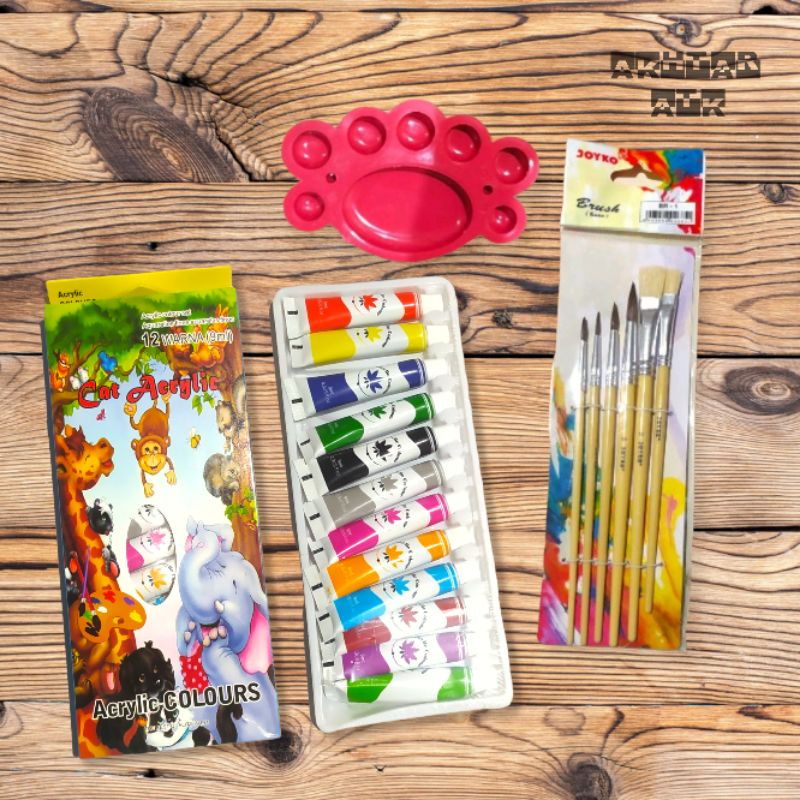 PAKET LUKIS 3 IN 1 / CAT ACRYLIC VTEC + KUAS JOYKO BR1 + PALET
