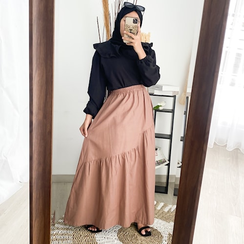 Bawahan Rok Wanita REINY SKIRT Maxi Linen Cewek Dewasa Kekinian Hijab Panjang Modern Murah