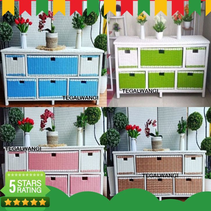 Lemari Rotan Warna Warni Jasmine 6 Laci Box