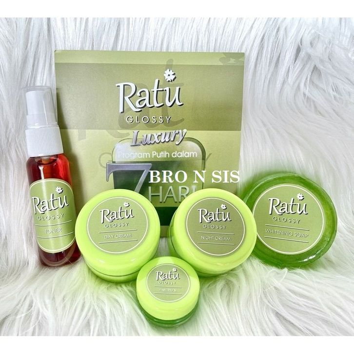 Paket Skincare Cream Pemutih Wajah Ratu Glossy Pengelupasan Kulit Hitam & Flek Berjerawat Pemutih Wajah 6 Items *1506