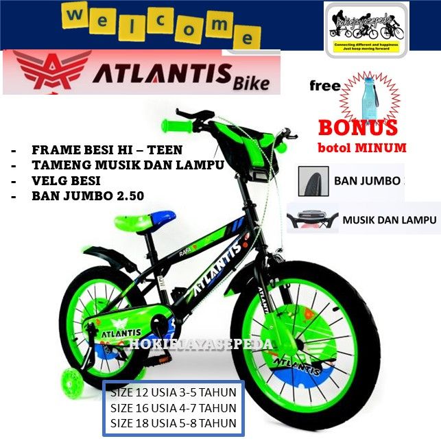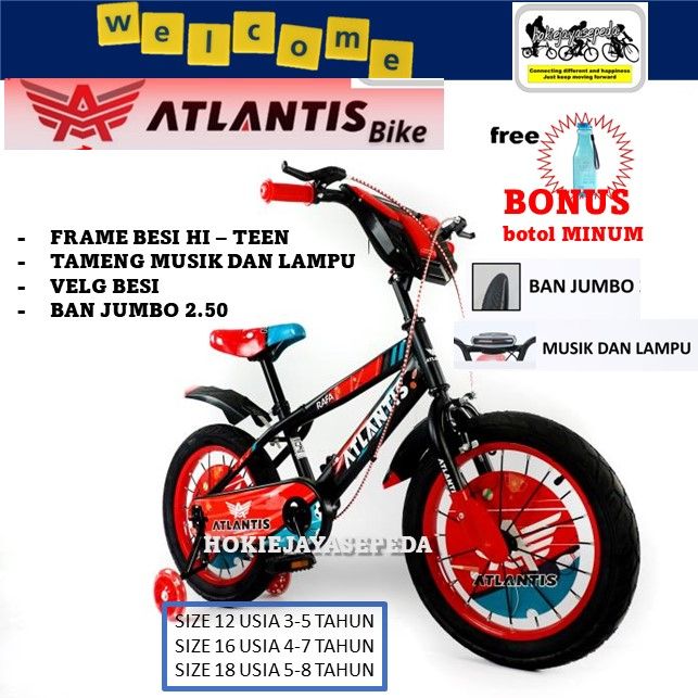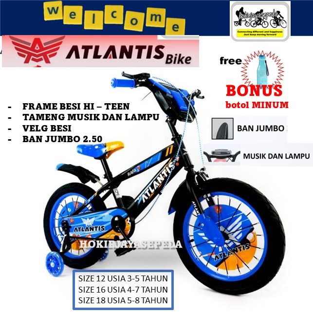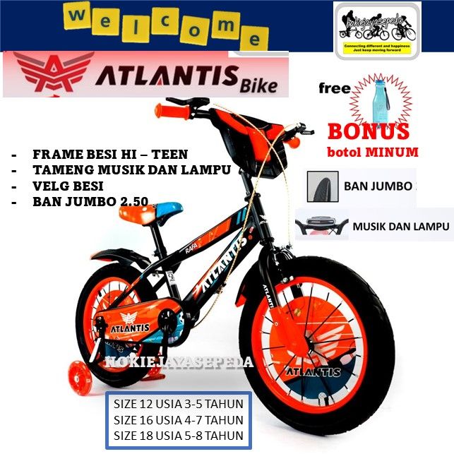 Sepeda Anak Bmx Atlantis 16"-18" Rafa Ban Jumbo 2.50 Dengan Musik Dan Lampu Anak Usia 3-5 Tahun Bonus Botol Air Murah
