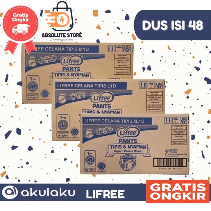 Lifree Pants Ukuran M\L\XL\ XXL isi 48/Kardus Popok Celana Dewasa Popok Dewasa