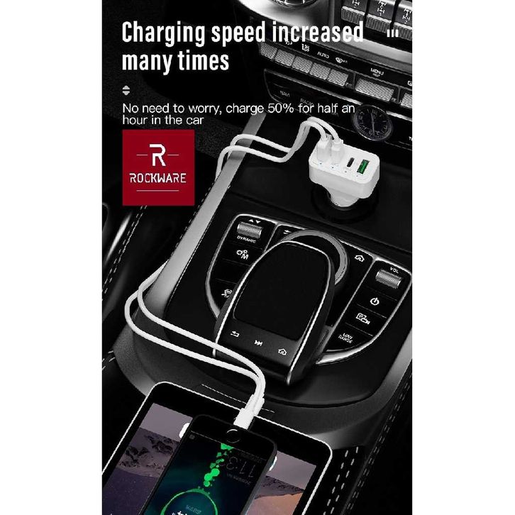 Rockware Wlx-K26 - 4 Usb Port Car Charger 40W Max - Support Pd And Qc Terbaik