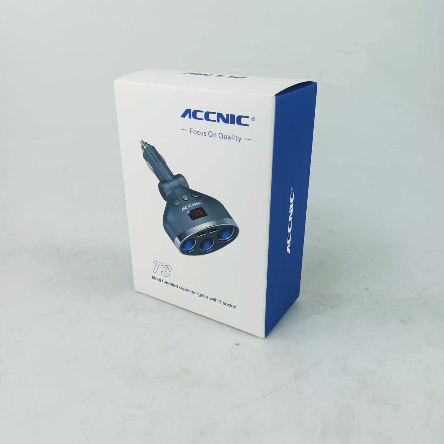 Cas Kabel Adaptor Accnic Car Charger 2 Usb Port + 3 Cigarette Plug 3.4A Lcd Display - T3