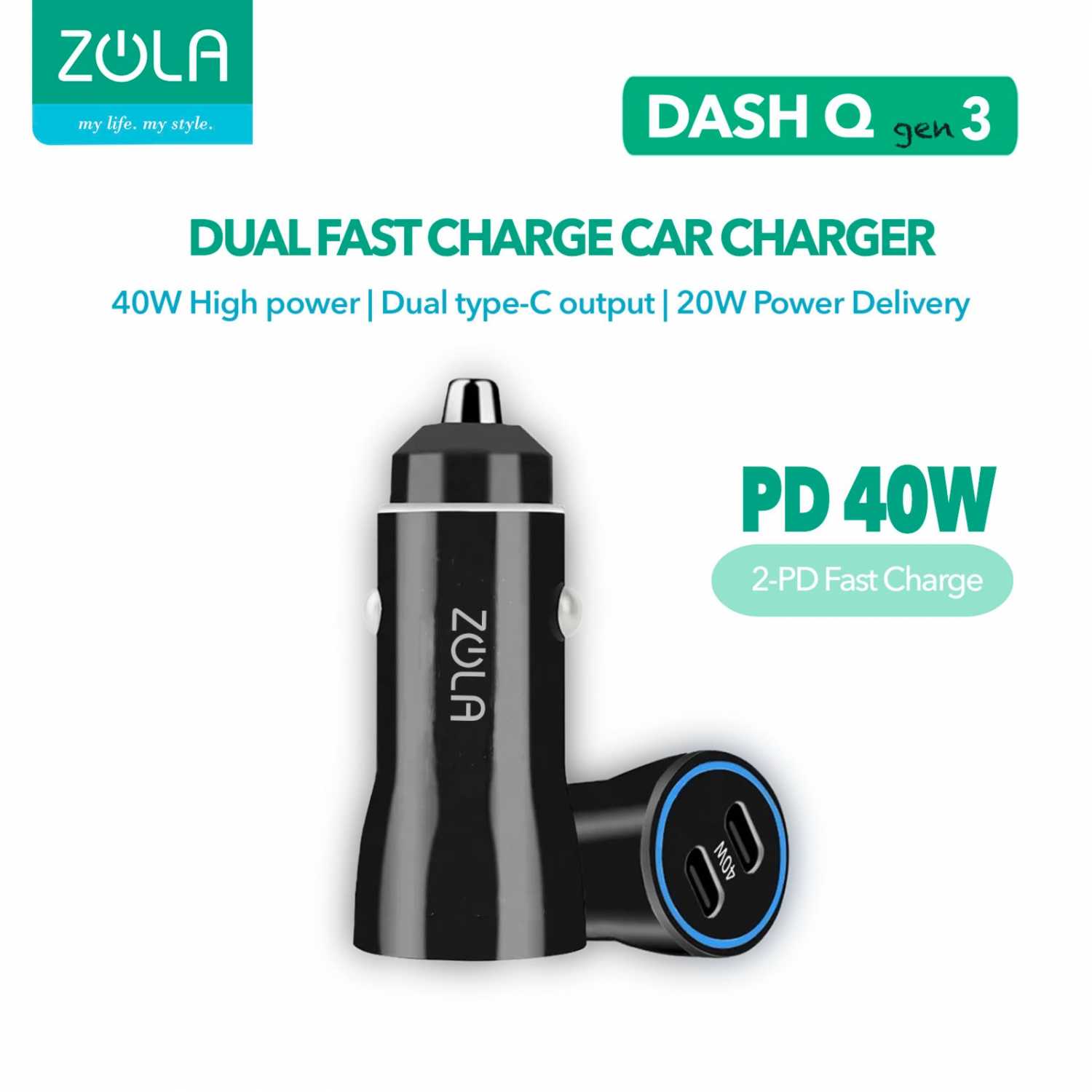 Adaptor Kabel Cas Zola Dash Q Gen 3 Car Charger Mobil 40W 20W Dual Port Usb Type C Pd Qc