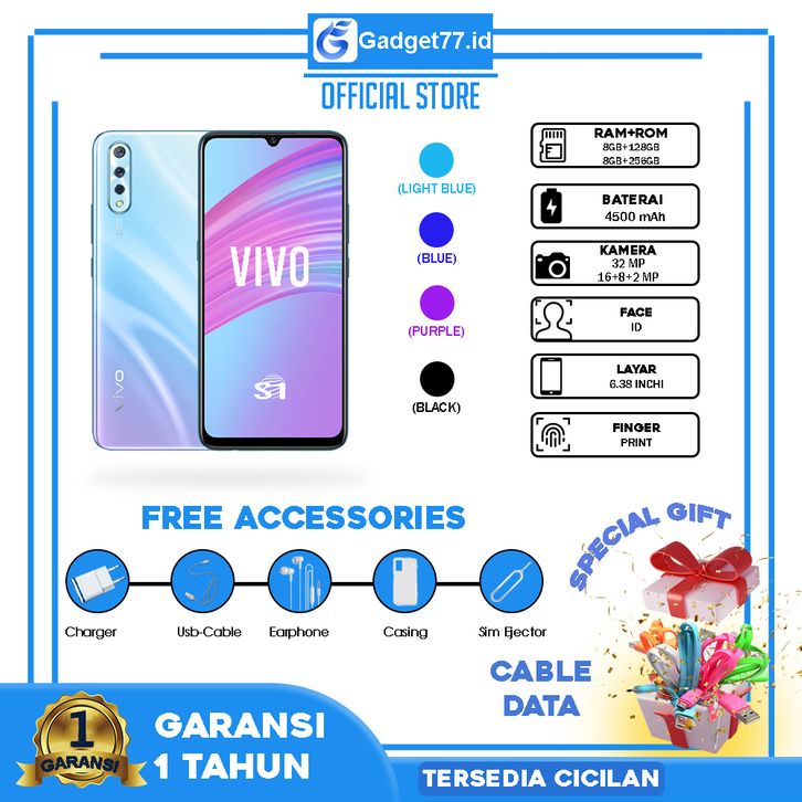 HP VIVO S1 RAM 8/256GB Handphone Dengan Kamera Depan 16MP+8MP+2MP, LED flash, HDR, panorama