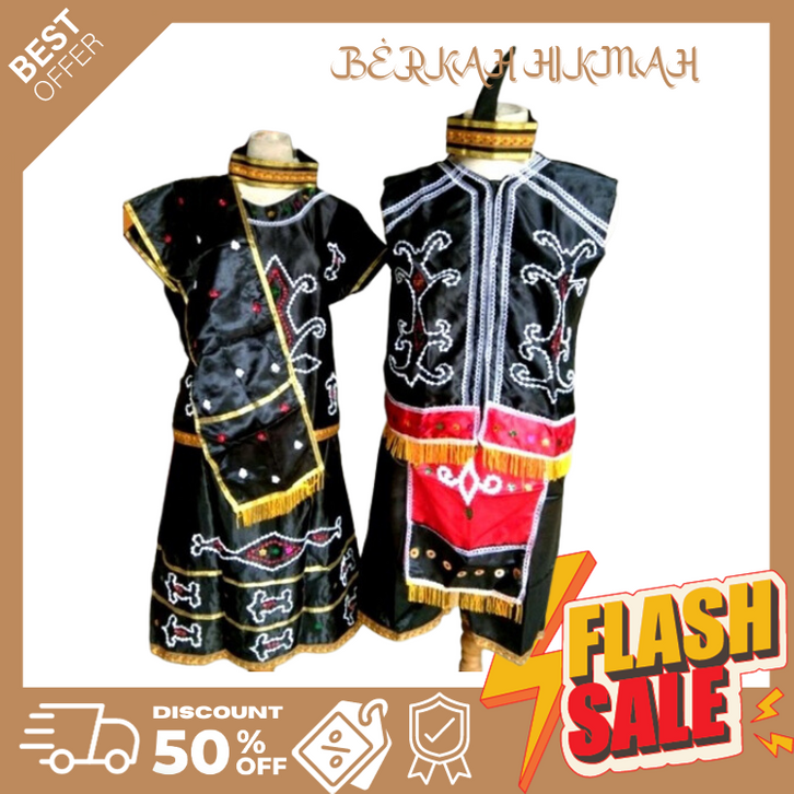 BAJU ADAT KALIMANTAN BARAT DEWASA HITAM (PRIA/WANITA)