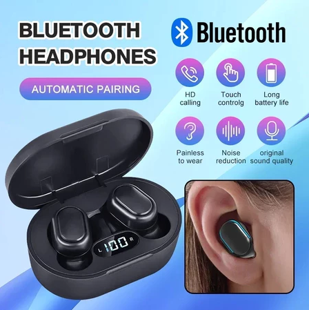 Headset Bluetooth E7s Full Bass Stereo TWS Wireless Earphone Powerbank 3000 Mah