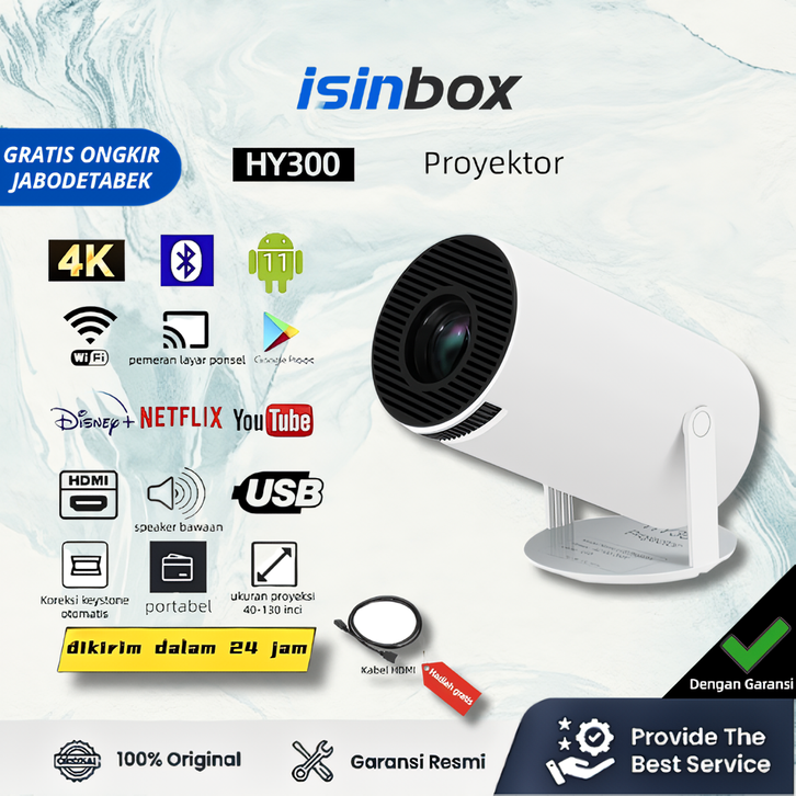 Proyektor Mini Android Hy300 Untuk Hp Layar Tancap Tv Digital 11.0 Infocus Projector Murah 2.4+5G Support 4K Portable