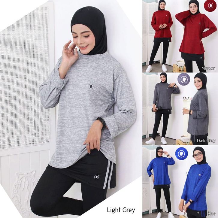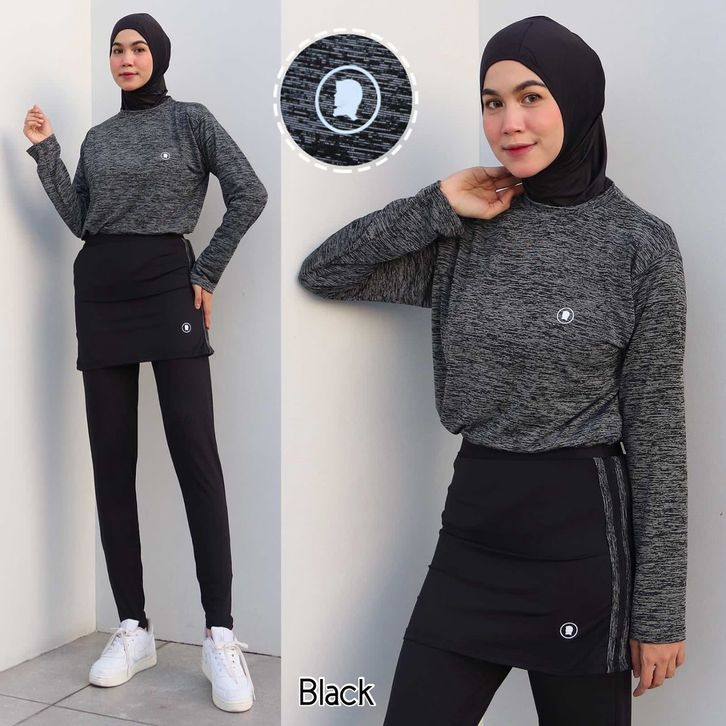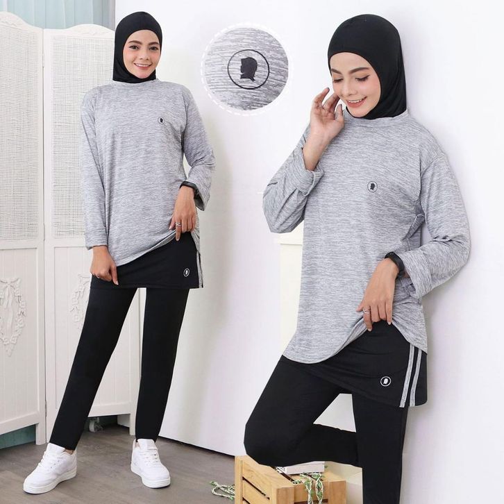 Baju Olahraga Setelan Hijab Atasan Legging Rok Cewek Satu Set Sport Joging Runing Senam Polyester Jersey Adem Stylish