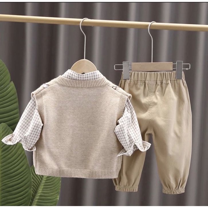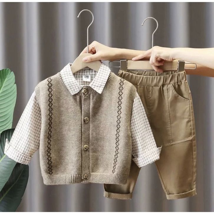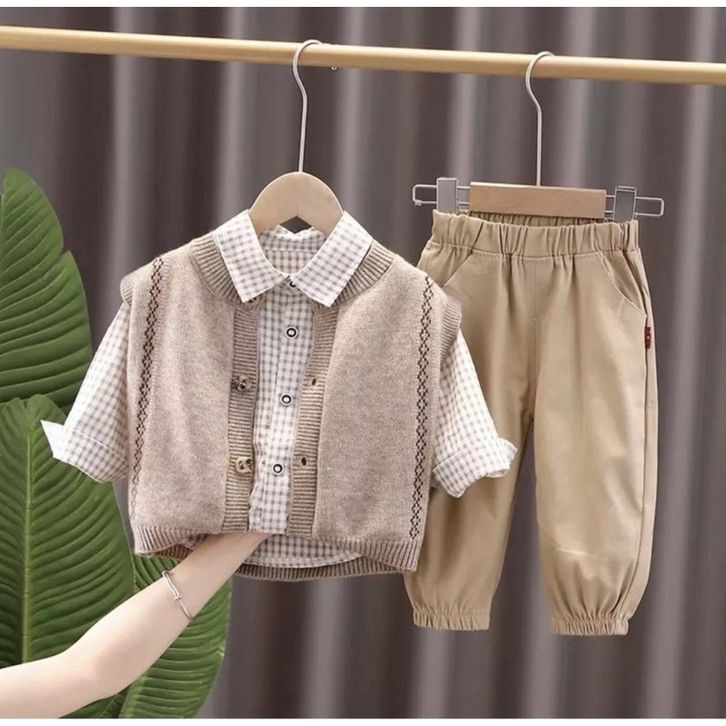 Setelan anak laki laki 1 tahun 2 tahun 3 tahun 4 tahun 5 tahun setelan kemeja celana anak 3 in 1 premium murah terbaru