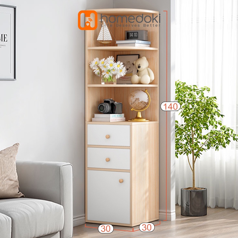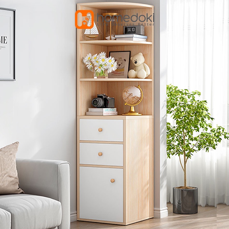 Homedoki Rak Sudut Kayu Rak Penyimpanan Serbaguna/Rak Multifungsi Minimalis/Rak Buku Minimalis Murah