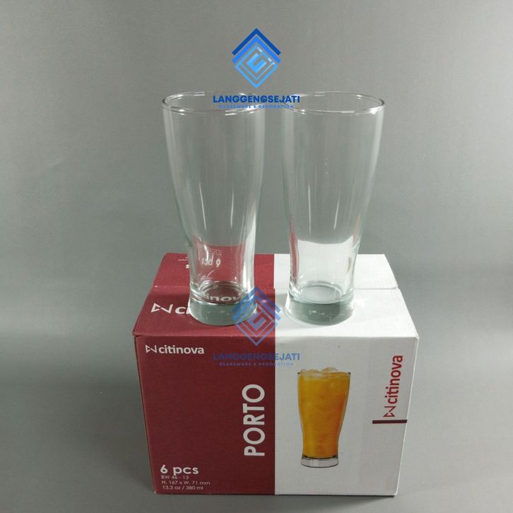 Gelas kaca lusinan aesthetic jumbo besar panjang kopi set 6pcs gelas jus Kaca bening cantik porto tebal tahan panas
