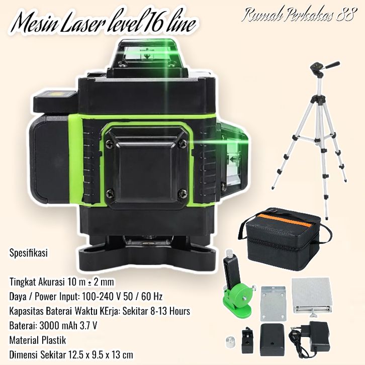 Laser Level 16 Lines Mesin Self Leveling 4D 16 line green